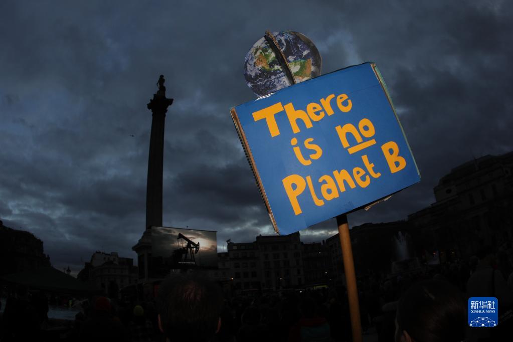 11月6日,人们在英国伦敦特拉法加广场参加集会,号召为应对气候变化采取更多行动。 新华社发(蒂姆·爱尔兰摄)