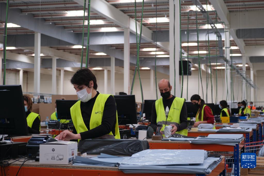 11月11日,工作人员在西班牙瓜达拉哈拉市的菜鸟网络所设立的海外仓中工作。新华社记者 孟鼎博 摄