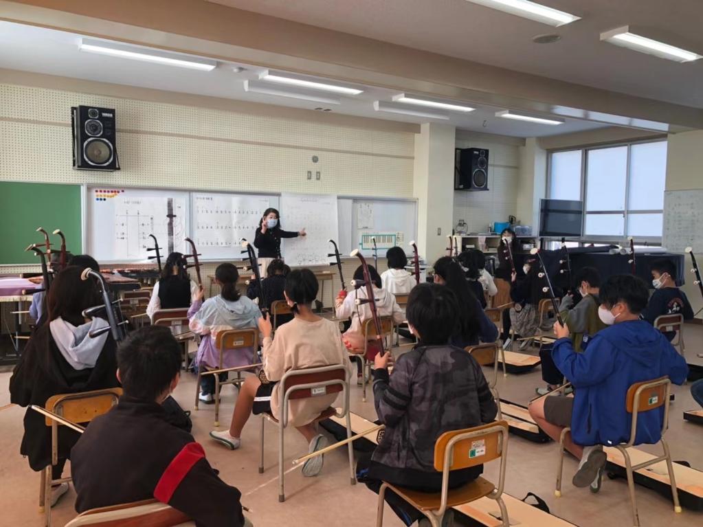 爱知小学校长柴山由美子告诉记者,爱知小学的教育目标是“共生、共学”,她希望学生们通过学习二胡演奏技法能帮助他们加深对中国文化的理解。