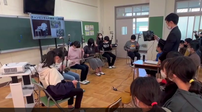 受新冠疫情影响,日本小学生音乐课上使用的吹奏乐器因为戴口罩的原因不能使用了。于是,张滨带着二胡到更多学校去交流,让更多的日本孩子接触二胡,体验二胡演奏的乐趣。学生们对二胡的热情也感染了名古屋市教育局局长铃木诚二。不久前,他和张滨以及另外两位友人一起自掏腰包,从中国购买了53把二胡捐赠给爱知小学,让二胡走进日本的小学音乐课堂。