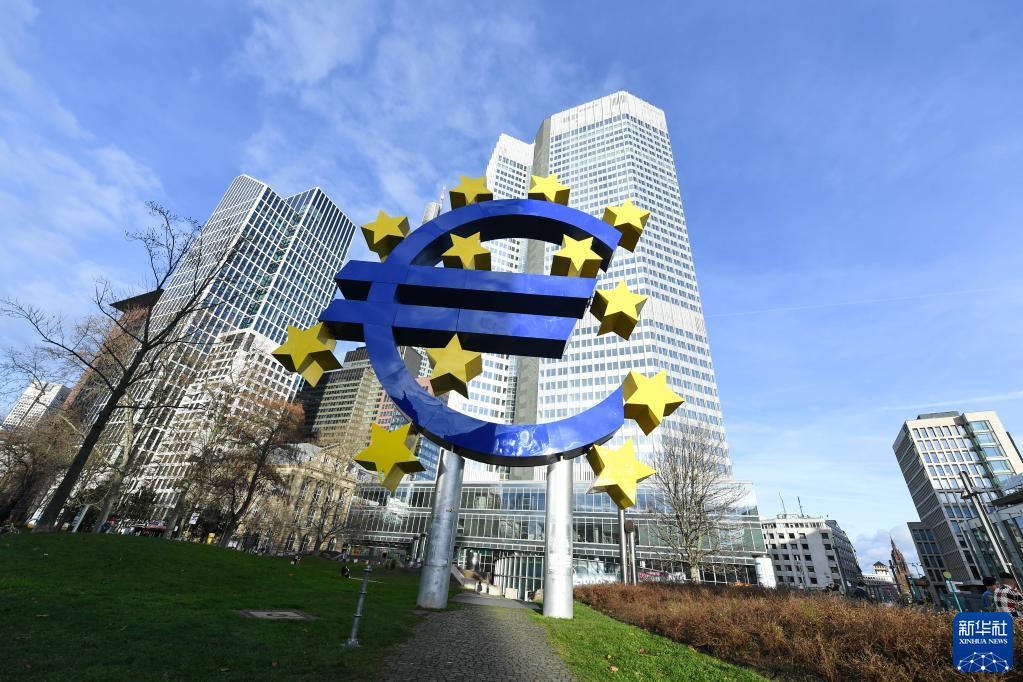这是2021年12月30日在德国法兰克福拍摄的欧元雕塑。新华社记者 逯阳 摄