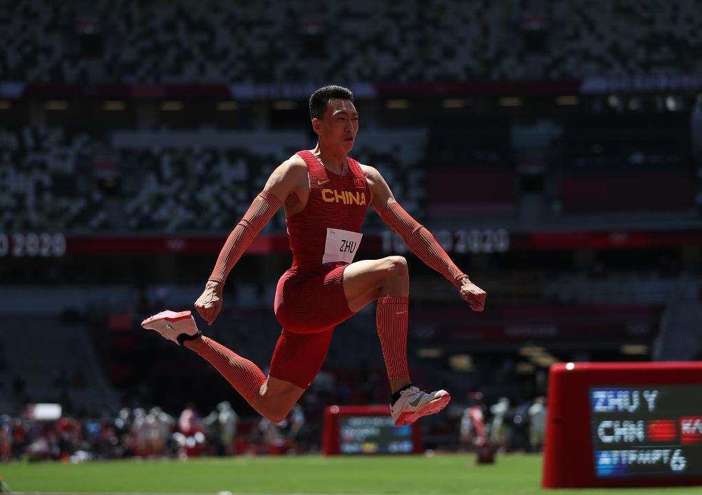 当时仅练习三级跳远六年的朱亚明