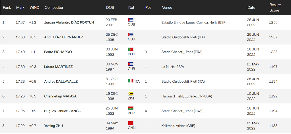 6月刚刚跳出17米87的惊人成绩