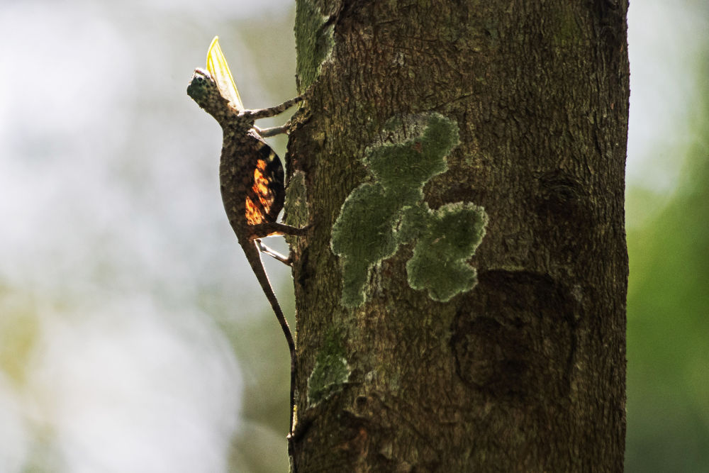 ↑一只飞蜥在双溪布洛湿地保护区出没。