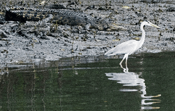 ↑在双溪布洛湿地保护区拍摄的咸水鳄鱼。
