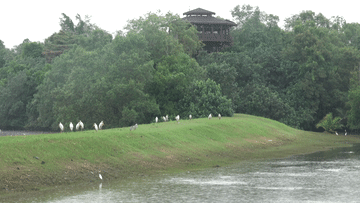 ↑从观鸟塔上眺望双溪布洛湿地保护区红树林景观。