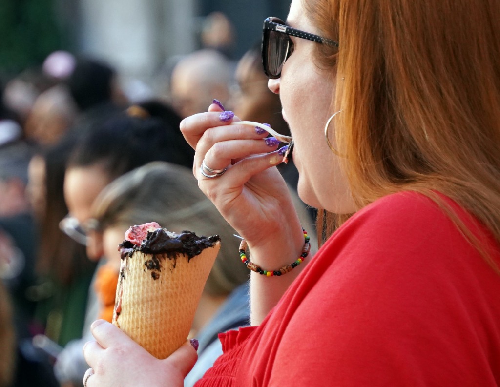 2022年12月25日,一名女子在意大利罗马吃冰淇淋。受暖流影响,意大利全国气温在圣诞节期间超往年同期,中部和南部地区气温或超过50年来最高水平。新华社记者金马梦妮摄