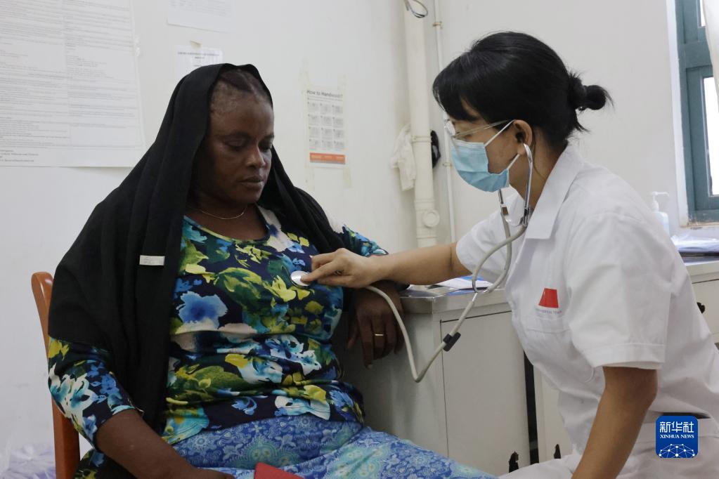 2月27日,在位于塞拉利昂首都弗里敦市郊的塞拉利昂-中国友好医院,一名中国医疗队医生为患者检查身体。