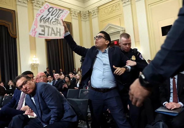 据美国《国会山报》报道,美国众议院“美中战略竞争特别委员会”首次听证会于当地时间2月28日召开,但在听证会过程中,有抗议者举着“中国不是我们的敌人”的标语,还有人大喊,“这个委员会是关于加剧紧张的,而不是关于和平”。