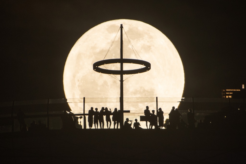 2022年6月14日,“超级月亮”在新加坡滨海湾上空升起。新华社发(邓智炜摄)