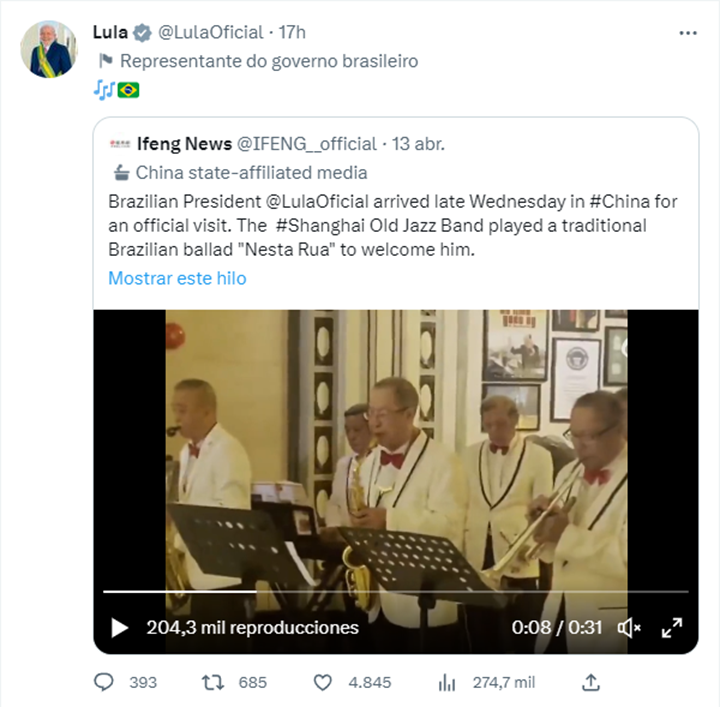 当天下午,卢拉一行还参观了华为上海研究所。华为是美国打压的对象,美国也一度对巴西政府施压,要求将华为排除在巴西5G网络建设之外。