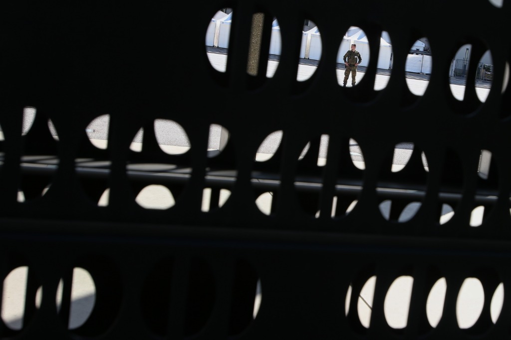 2013年8月24日,在德国柏林,一名士兵站在德国国防部的军营内。新华社记者张帆摄