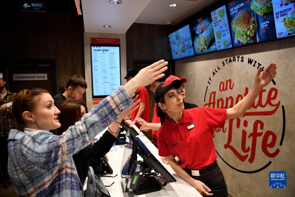 25日下午,俄罗斯首都莫斯科市中心一家名为“罗斯蒂克”的餐厅正式开业,吸引众多目光。工作人员身穿统一工作服,微笑着对往来顾客说着“欢迎光临”。