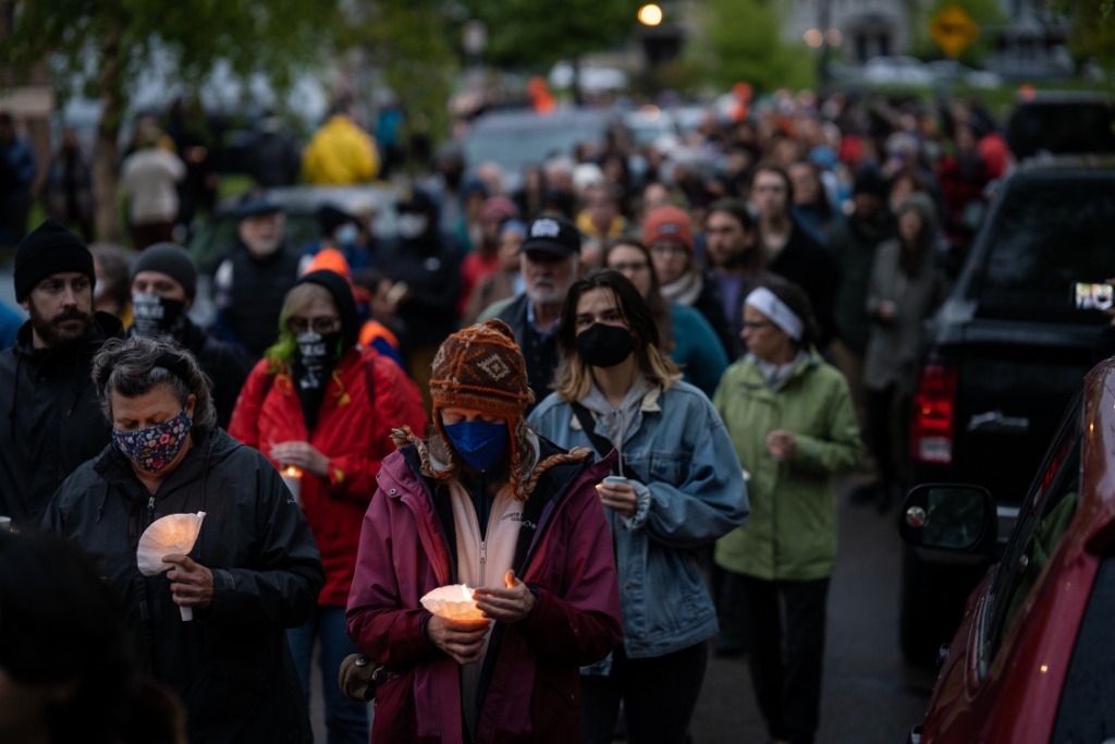 2022年5月25日,在美国明尼苏达州明尼阿波利斯市,人们参加哀悼活动,纪念弗洛伊德遇害两周年。新华社发(本·布鲁尔摄)