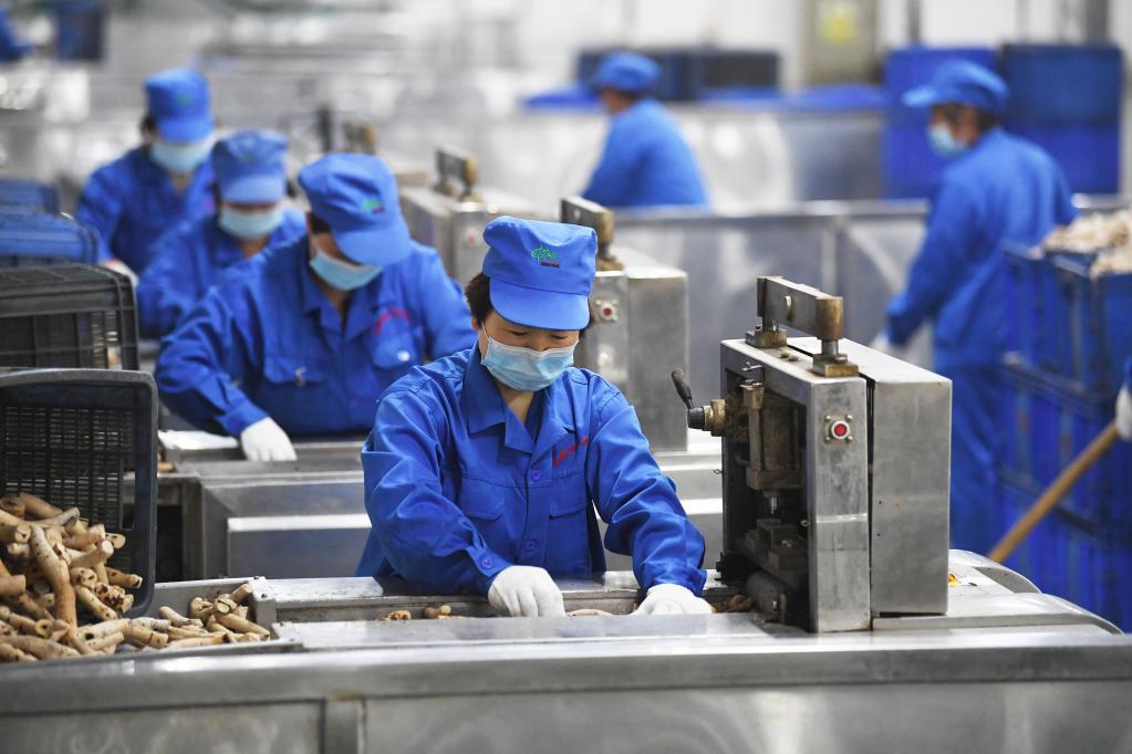 工作人员在安徽协和成药业饮片有限公司的生产车间切制中药饮片(2022年4月18日摄)。 新华社发
