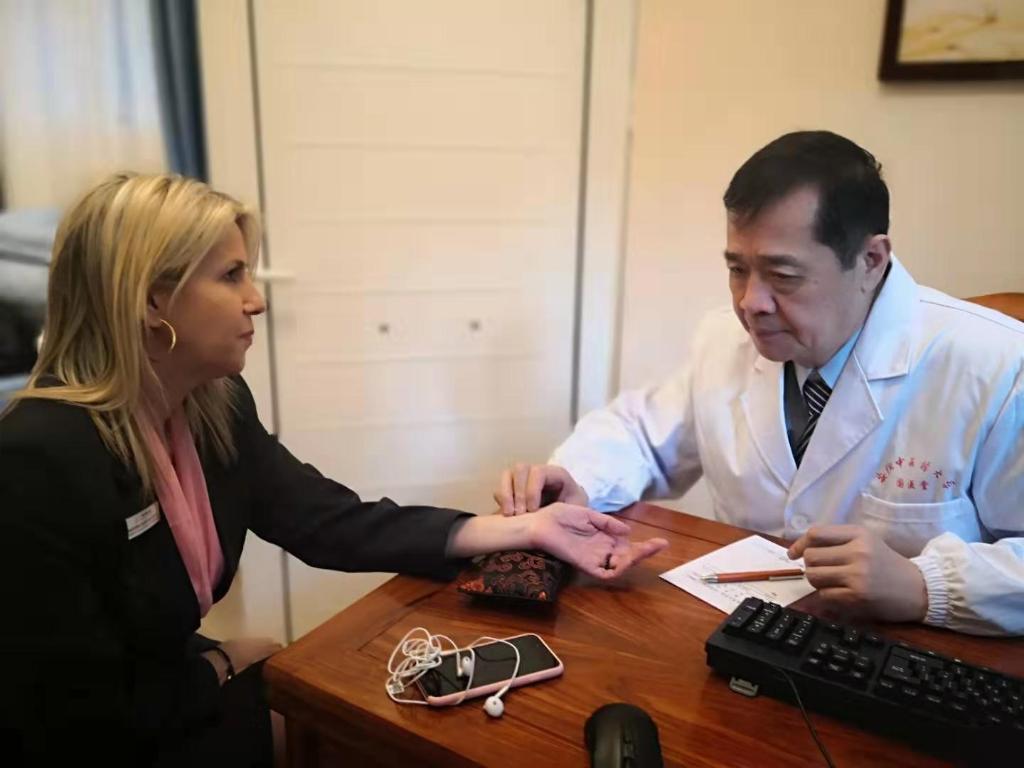 在位于希腊雅典的安徽中医药大学雅典中医药中心,安徽中医药大学第一附属医院杨骏教授为希腊民众把脉问诊(2019年12月摄,资料照片)。 新华社发