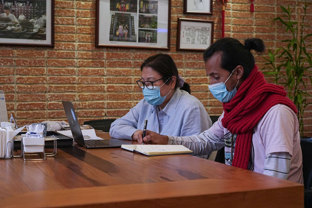 这是7月20日拍摄的匈牙利岐黄中医药中心负责人陈震(右)和甘肃外派专家张海芳一同讨论。 新华社发(弗尔季·奥蒂洛摄)