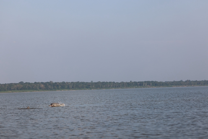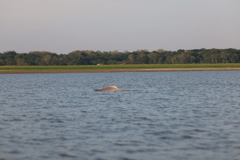 一只粉色的亚马孙河豚露出脊背。 唐薇 摄