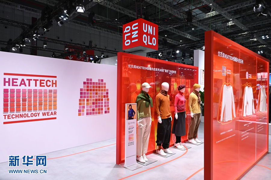 图为5日拍摄的第六届进博会上的优衣库展台。(新华社记者彭纯摄)