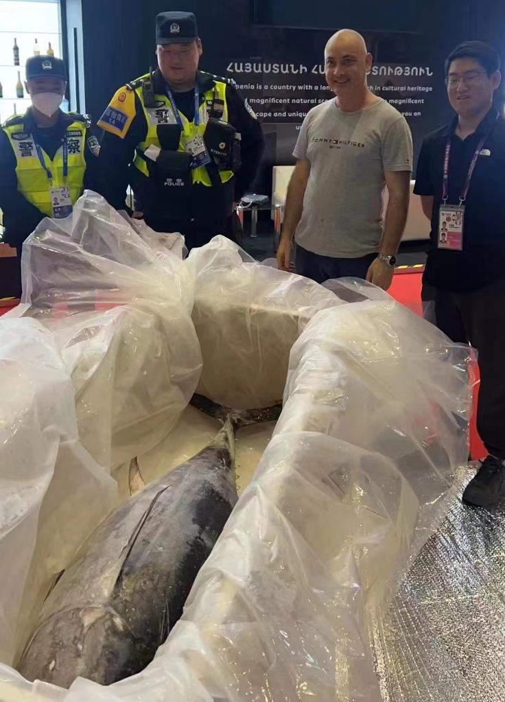 今年,海关总署出台了17条支持进博会的便利措施,提出“在评估确认风险可控的前提下,允许无动植物疫情流行国家(地区)未获检疫准入的动植物产品、食品,经特许审批后入境参展”。上海海关据此指定专人与马耳他方面对接,安排细化了一整套安全便捷的监管服务流程。在金枪鱼空运抵沪后,上海海关引导展商通过进博会专窗完成口岸通关手续,并提供参展跟踪服务。