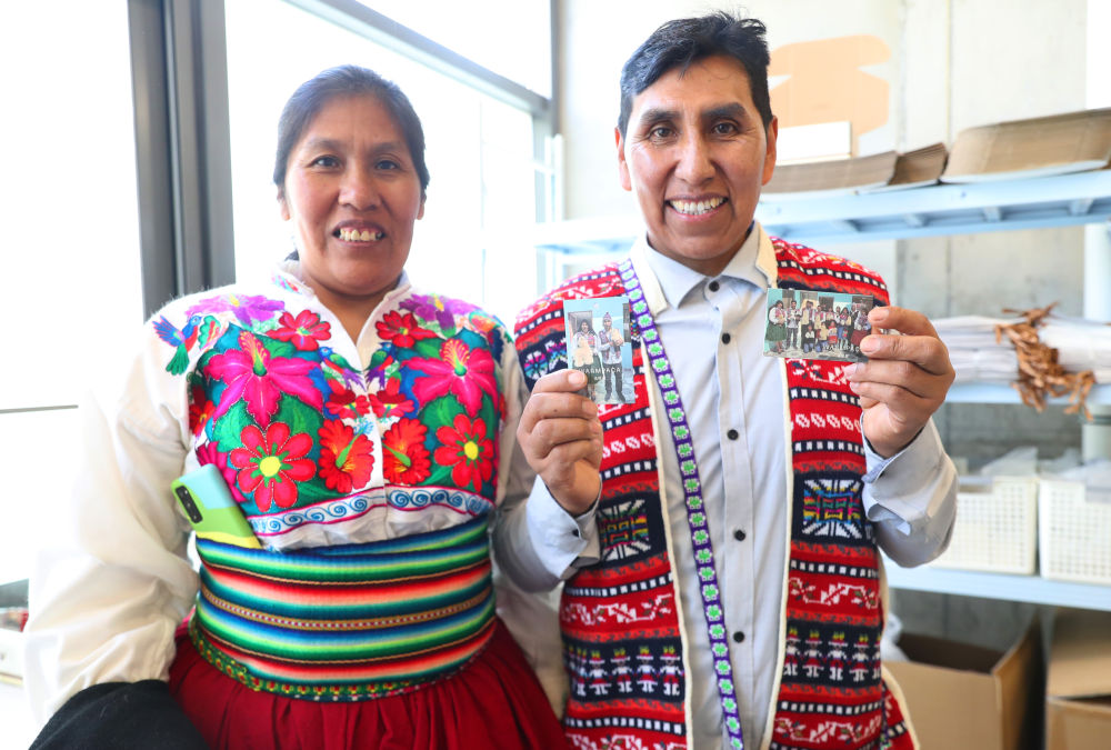 ↑在秘鲁南部城市阿雷基帕的工坊内,马马尼大叔和妻子格洛丽亚展示羊驼玩偶和其他秘鲁特色手工艺品(10月27日摄)。