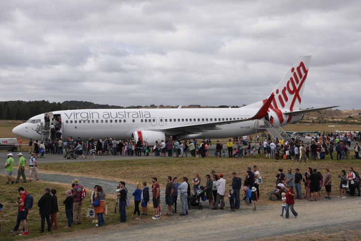 2016年4月3日,在澳大利亚堪培拉国际机场开放日活动上,民众参观维珍航空公司客机。 新华社发(钱军摄)