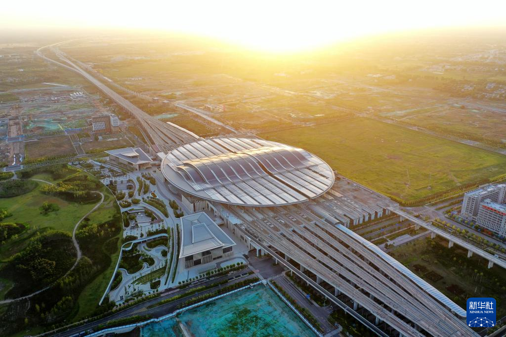 2023年6月2日拍摄的雄安站(无人机照片)。雄安站位于雄安新区昝岗片区,是雄安新区开工建设的第一个重大基础设施项目。