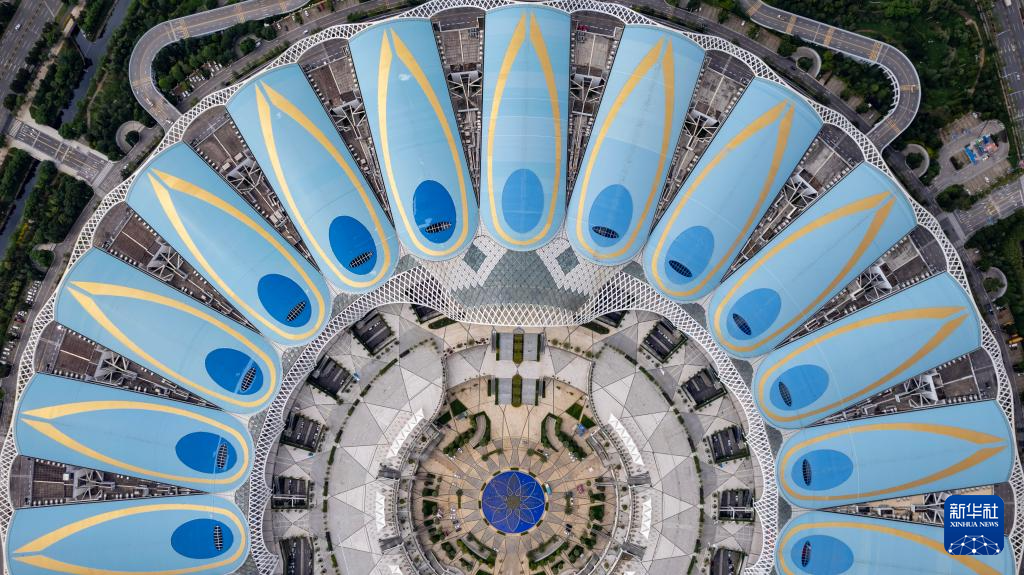2023年8月7日拍摄的第七届中国—南亚博览会举办地昆明滇池国际会展中心(无人机照片)。