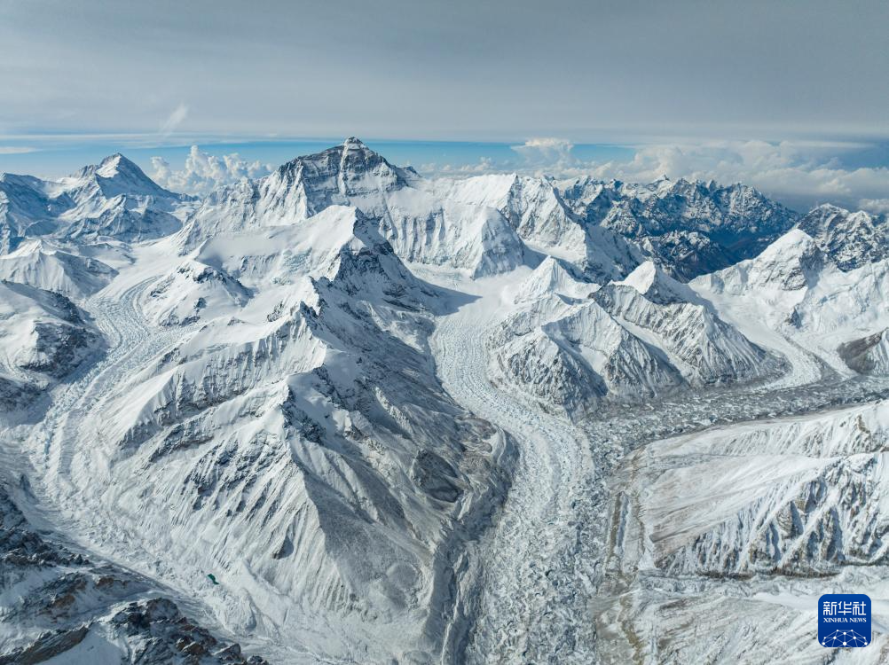 2023年5月23日在海拔8400米左右高空拍摄的世界之巅珠穆朗玛峰(无人机照片)。