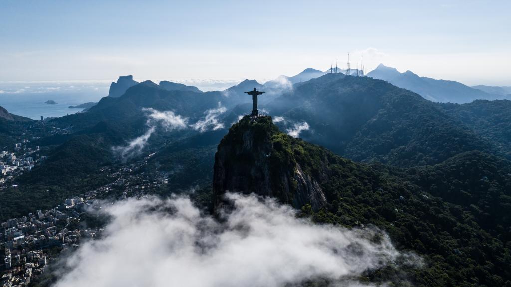 ↑2023年3月1日拍摄的巴西里约热内卢基督像和蒂茹卡国家森林公园。