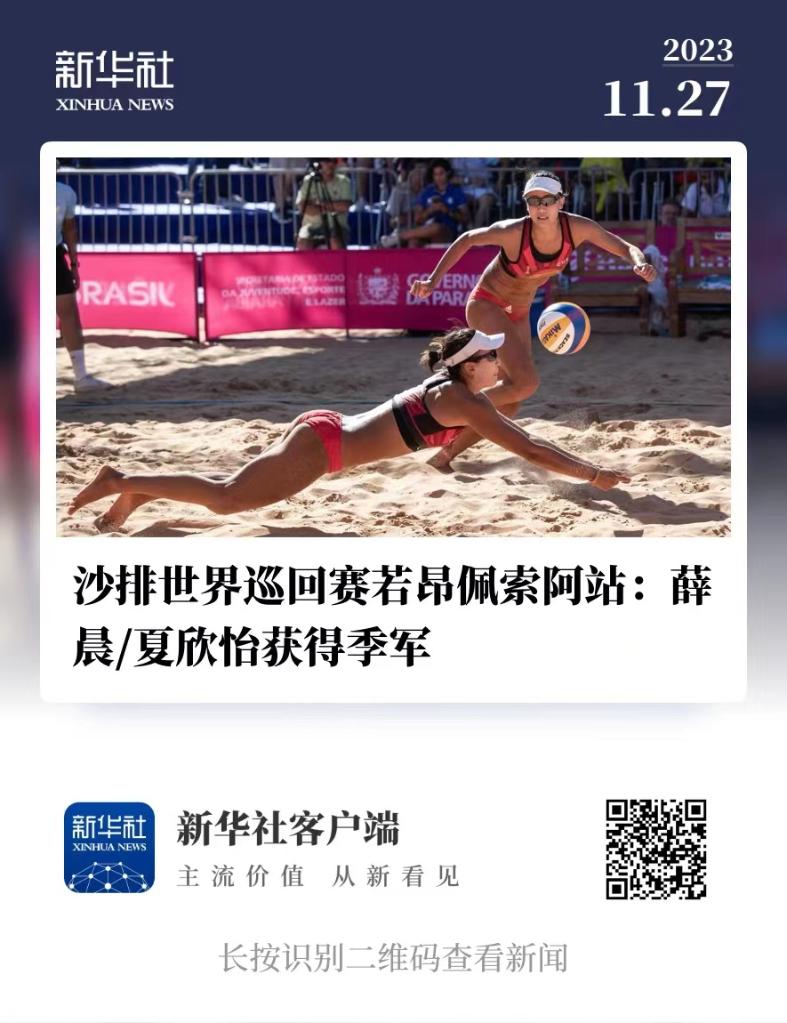 临近2023年底,薛晨/夏欣怡又一次踏上巴西旅程,征战帕拉伊巴州若昂佩索阿精英赛,这一次虽然没能击败世界排名第一的巴西组合安娜·帕特里夏/杜达,但在季军赛中发挥出色,战胜经验丰富的美国组合努斯/克洛特,比赛过程惊险刺激,最后在观众的加油和欢呼声中赢得季军。