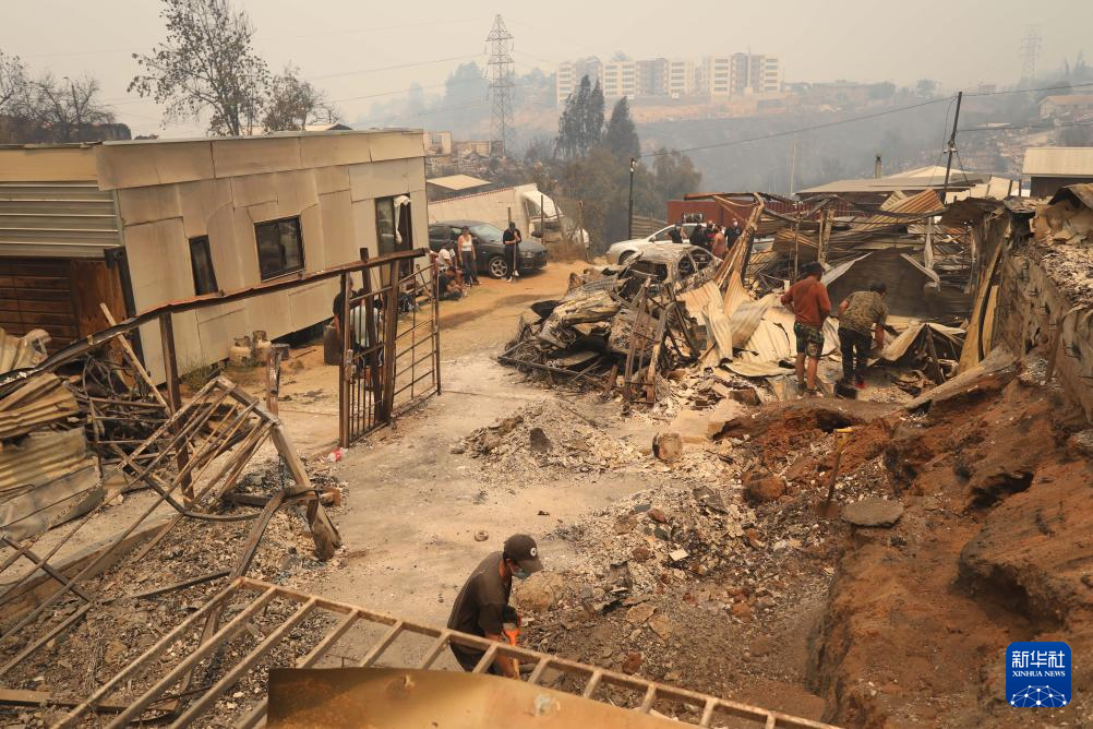 2月3日,在智利瓦尔帕莱索大区比尼亚德尔马市,当地民众清理在森林火灾中烧毁的房屋。新华社发pagebreak