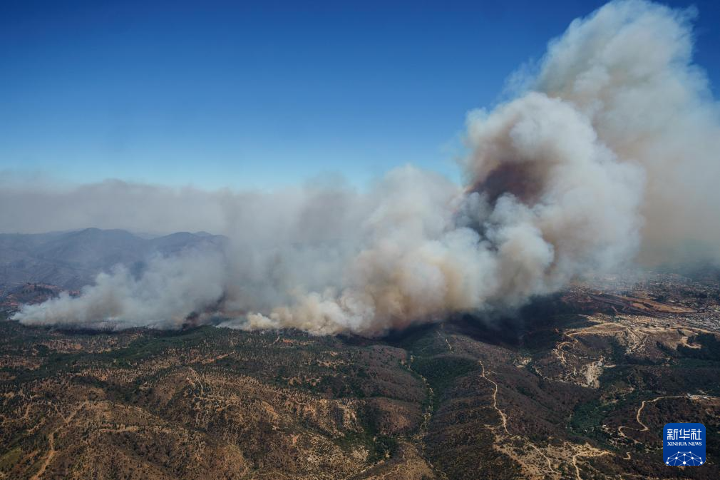 这是2月3日从直升机上拍摄的智利瓦尔帕莱索大区森林火灾情况。新华社发(智利总统府供图)pagebreak