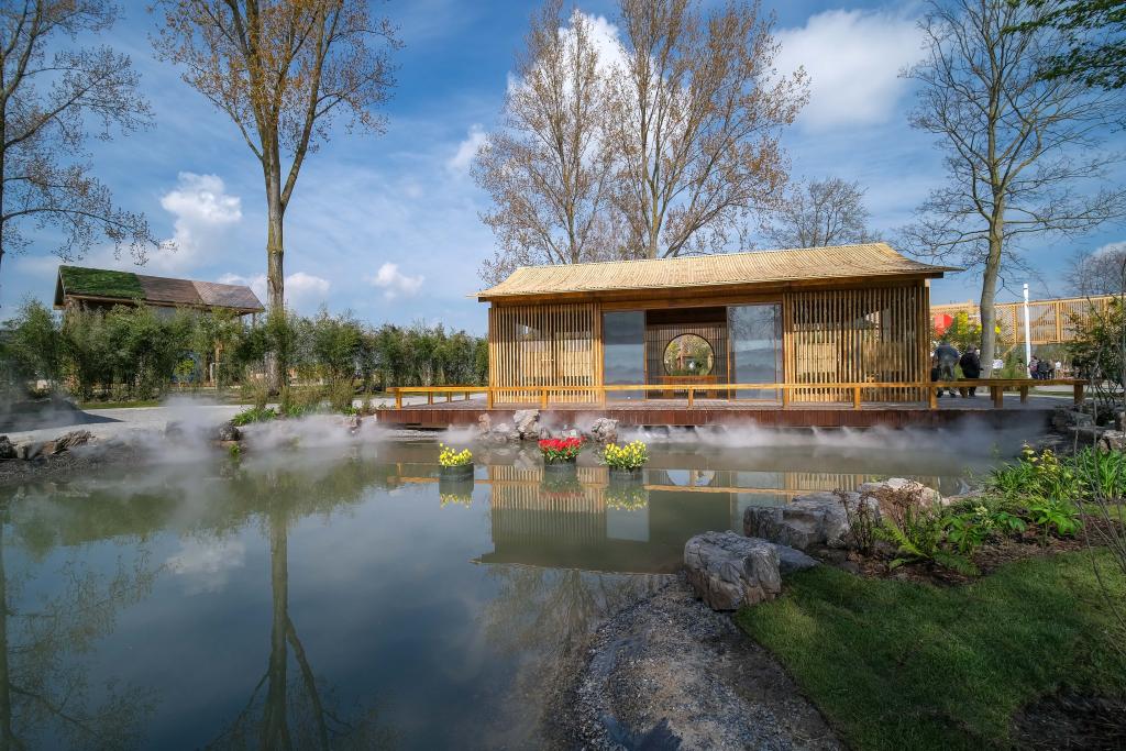 这是2022年4月14日在荷兰阿尔梅勒世界园艺博览会上拍摄的“中国竹园展馆一景。(新华社记者张铖摄)