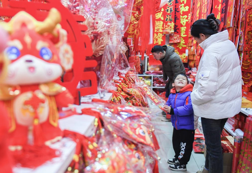 市民在汉口北国际商品交易中心挑选年货。新华社记者杜子璇 摄