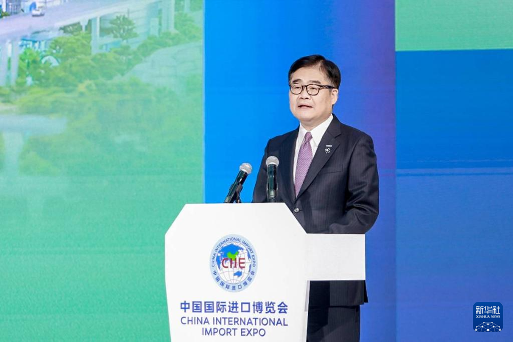 2023年11月6日,本间哲朗在中国上海举行的第六届中国国际进口博览会上演讲(资料照片)。新华社发(受访对象供图)