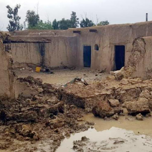4月17日,在巴基斯坦俾路支省,房屋建筑因暴雨而损坏(手机照片)。新华社发