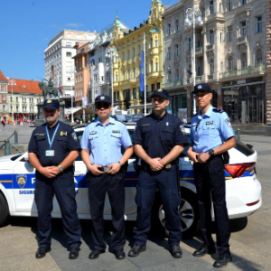 7月23日,中国和克罗地亚警察在克首都萨格勒布进行联合巡逻。