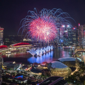 这是8月9日在新加坡国庆庆典上拍摄的烟花。