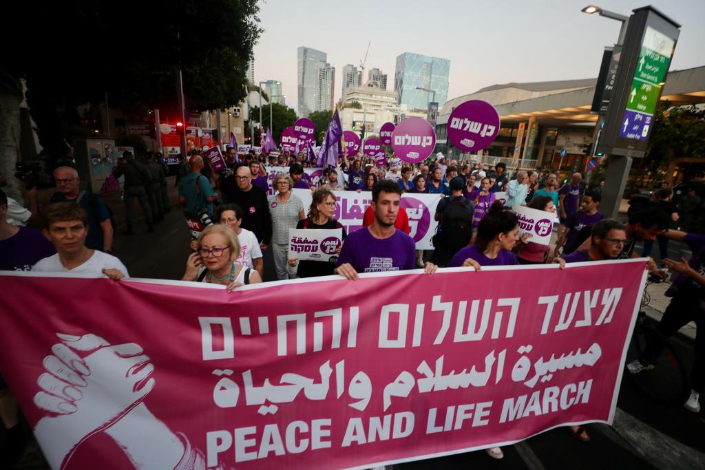 7月25日,以色列民众在特拉维夫举行游行集会,要求政府尽快与巴勒斯坦伊斯兰抵抗运动(哈马斯)达成协议,在加沙地带实现停火并促使被扣押人员尽快获释。新华社发(贾马尔·阿瓦德摄)