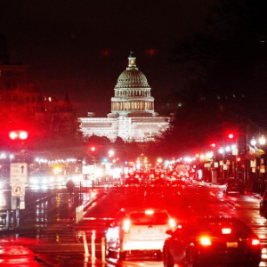 这是2022年12月22日在美国华盛顿拍摄的雨中的车辆和国会大厦。新华社记者刘杰摄