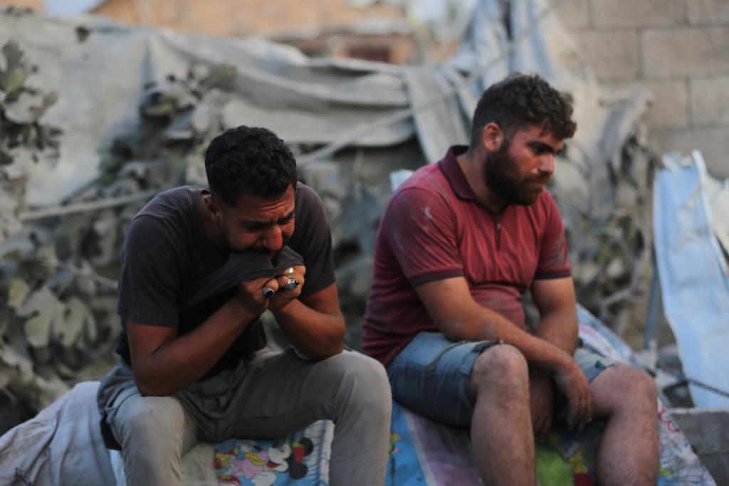 8月17日,在加沙地带中部扎韦达地区,一名男子为遇难者哭泣。据巴勒斯坦通讯社当天报道,以色列军队当天轰炸加沙地带中部的扎韦达地区,造成至少16人死亡、数十人受伤。(新华社发,马尔万·达乌德摄)