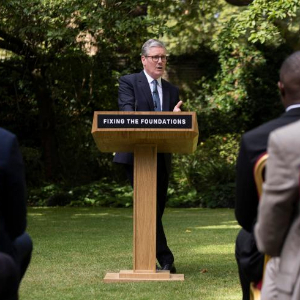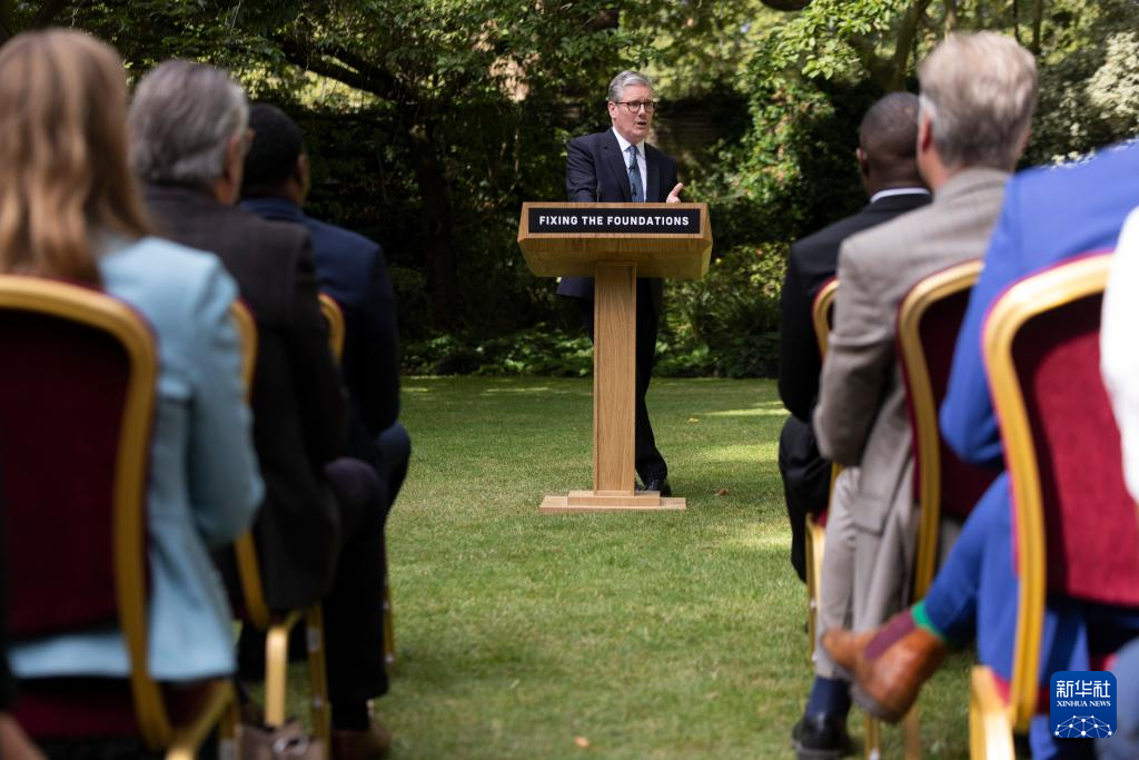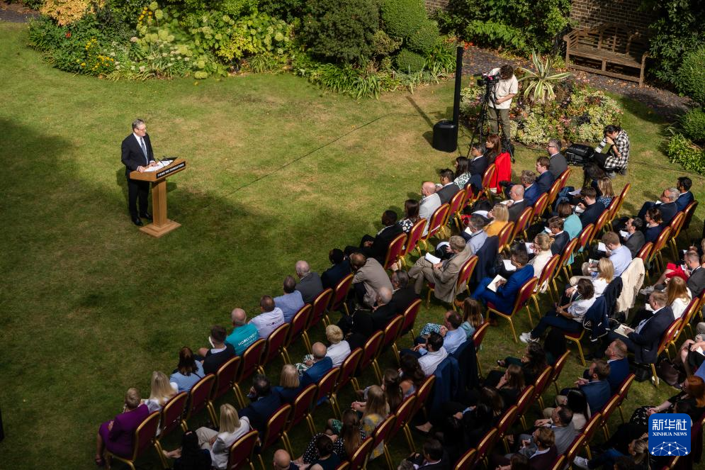 8月27日,英国首相斯塔默在伦敦唐宁街花园发表讲话。新华社发(英国首相府供图)