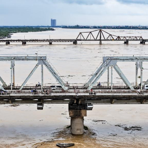 9月10日,在越南首都河内,河水上涨接近桥面。