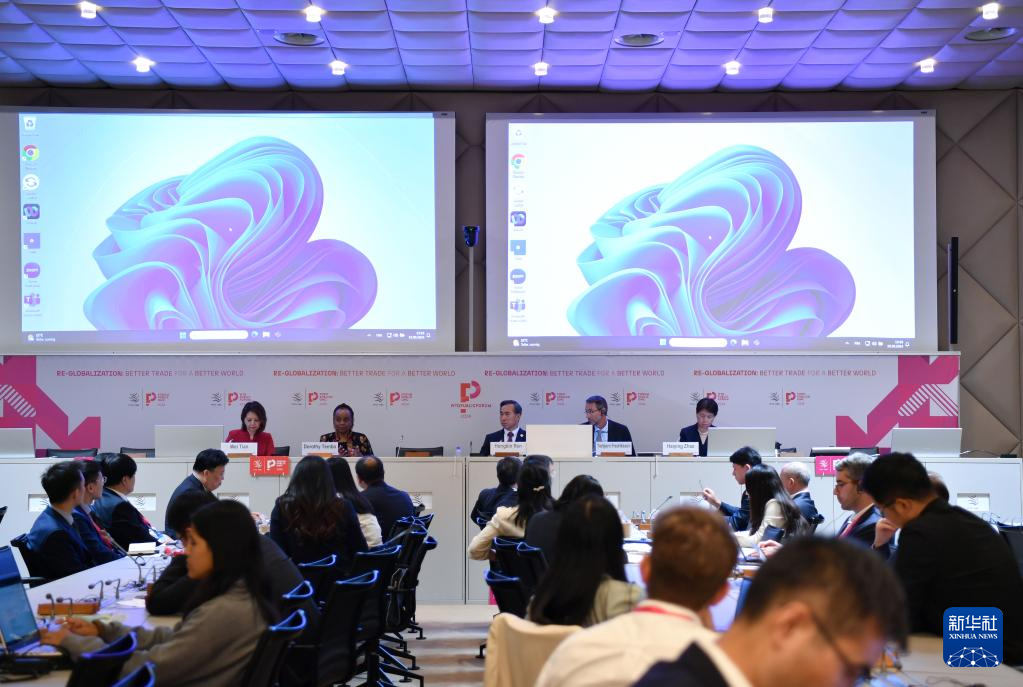 这是9月10日在瑞士日内瓦世界贸易组织总部拍摄的“构建更加绿色和具有韧性的供应链”研讨会现场。新华社记者 连漪 摄