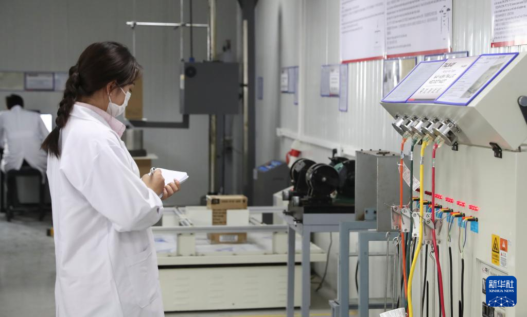 10月12日,技术人员在越南北宁省隶属上海广为电器集团的越南特为有限公司实验室检测产品。新华社记者 姚琪琳 摄
