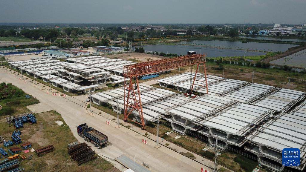 这是10月11日拍摄的位于泰国大城府的中泰高铁项目4-3标段施工现场(无人机照片)。