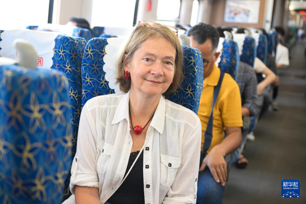 这是10月12日在老挝拍摄的中老铁路C98列车上的一名乘客。