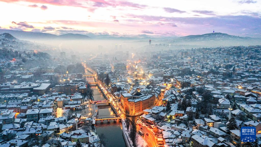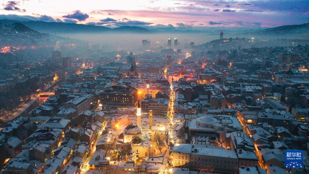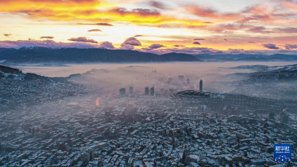 这是1月5日在波黑首都萨拉热窝拍摄的城市景观(无人机照片)。