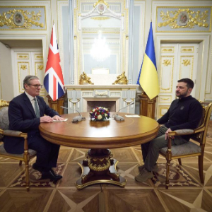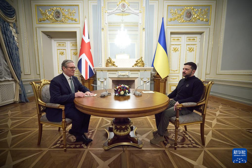 1月16日,乌克兰总统泽连斯基(右)与英国首相斯塔默在基辅举行会晤。新华社发(乌克兰总统办公室供图)
